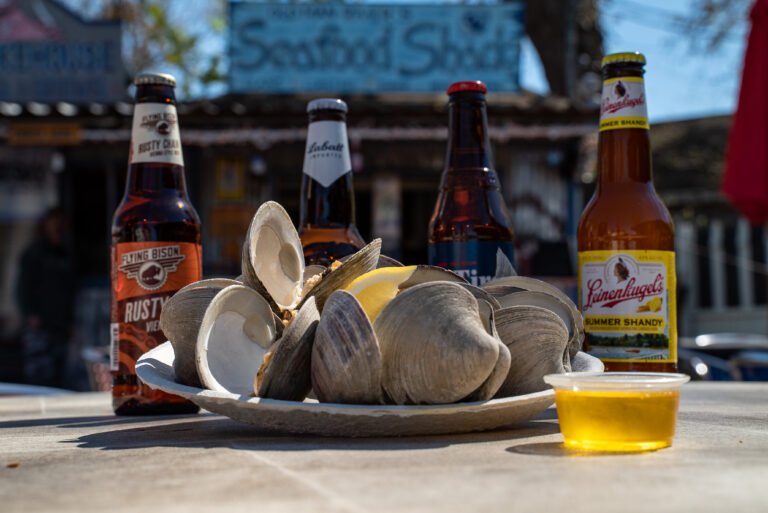 6 raw clams, 6 steamed clams, 6 clams casino, 2 ears of corn on the cob, and choice of 4 beverages